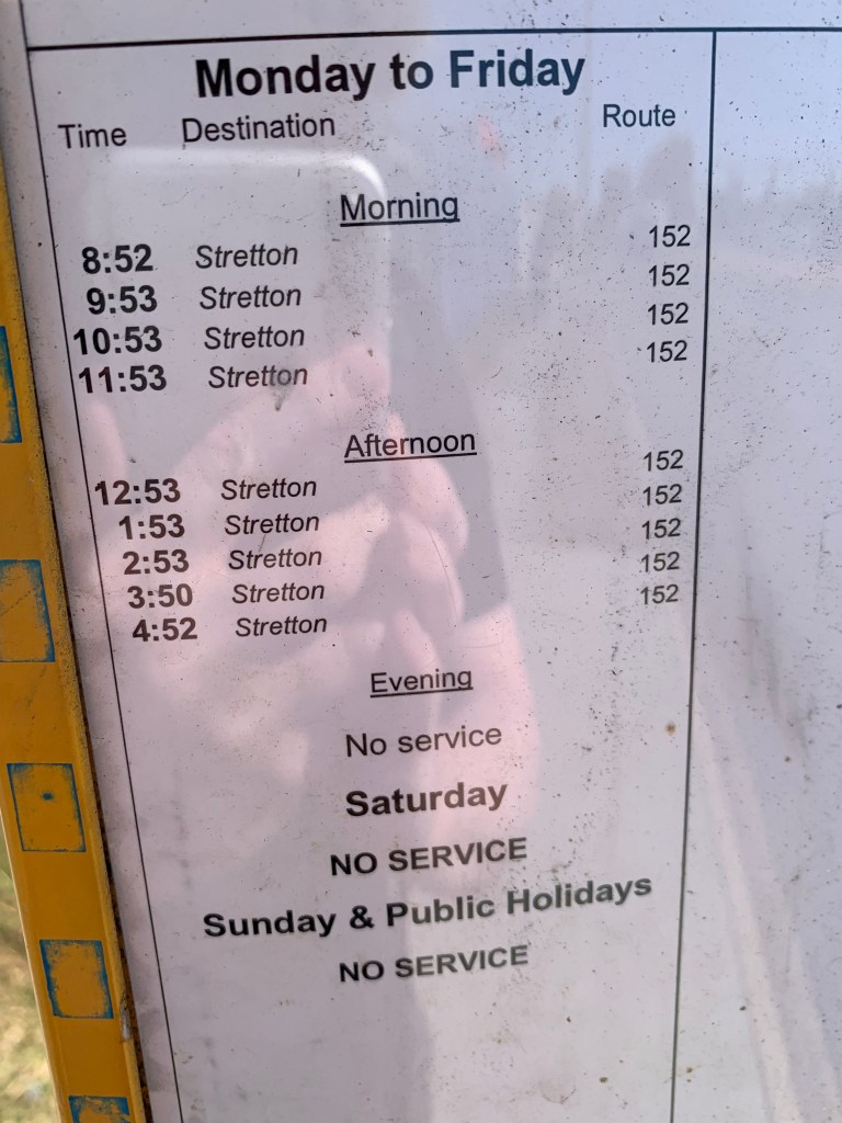 If you are coming from the city and decide to take the bus, there is no direct route. You can either take a bunch of options that all stop 15–20 minutes away on Great North Road, or connect with the 225/225F along Port Wakefield Road. SRSA’s website says that the 225/225F drops you at “a bus stop within a minute’s walking distance”. This is true… except, as I said, there is no footpath on Cavan Road. Good luck if you use a mobility aid. Worse? The one time I did this, there was a big ol’ sprinkler on, leaving me with two options: step out onto a busy road to walk around it, or run through it. I ran through it.
