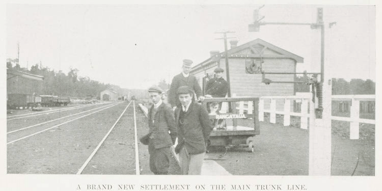 Not long after 5:30pm, Ted caught sight of the express to Auckland approaching the station. The oil-burning KA class locomotive that had brought it from Paekākāriki impressed him; he remembered it as a “mighty beast”. The train had a ten-minute stop in Palmerston North, which allowed for passengers to board while a new crew took over and the locomotive was swapped for another KA with a full tank of water—a procedure repeated at multiple stations so the express did not have to wait for the locomotive to be watered. After some confusion about Ted, John, and Douglas’s seats, a member of the railway staff directed them to the second carriage behind the locomotive. The express then resumed working its way up the island, passing through Feilding, Marton, and Taihape.