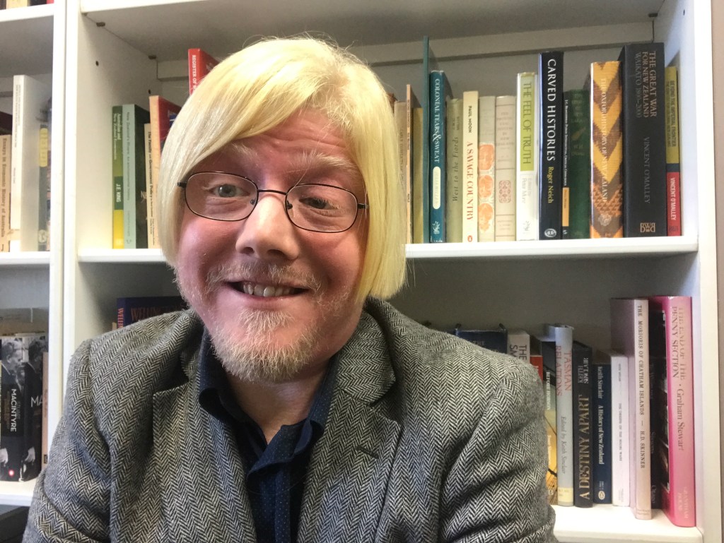 Yours truly. Yes, I posed this so that W.P. Morrell’s fine book on New Zealand’s provinces would be visible.