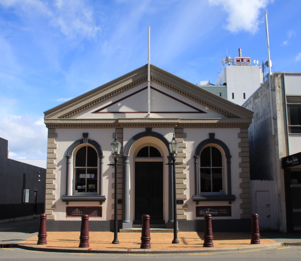 One other building that housed a provincial council exists. This building in Invercargill was originally built for a Masonic lodge in 1864; the Southland provincial council acquired it in 1866. Southland Province was shortlived, 1861 to 1870, and the building served other municipal purposes after Southland rejoined Otago in 1870. It is now a fashion shop, as seen here in March 2016.
